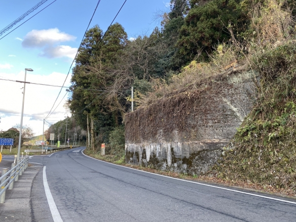県道381号多治見八百津線と八百津線廃線跡の分岐部には大型橋台が残る。