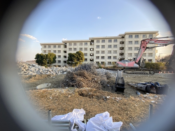 館ヶ丘団地 解体された3-11号棟と解体待ちの3-12号棟
