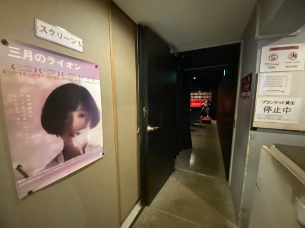 上映会場はアップリンク渋谷のスクリーン3だったが、スクリーン3の最前列は椅子席でなく地べたにそのまま座椅子を置いたようなスタイルだった。昔々、早稲田にあった「ACTミニシアター」というマイナー映画ばかり上映していた映画館を思い出す。雑魚寝スタイルで映画を見る変な映画館。毛布まで用意してあった気がするが(うろ覚え)、アップリンク渋谷スクリーン3は若干似たような雑魚寝スタイルでも流石にきれい。最前列はふかふかの背面でミニクッション付き、地べたに足を投げ出して見れるが清潔感がある。