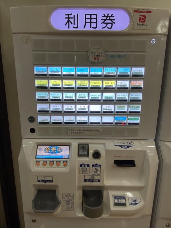 入口にある券売機。PayPayに対応している。領収書の発行が可能。