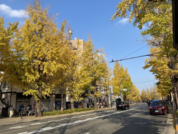 紅葉する甲州街道・秋の銀杏並木