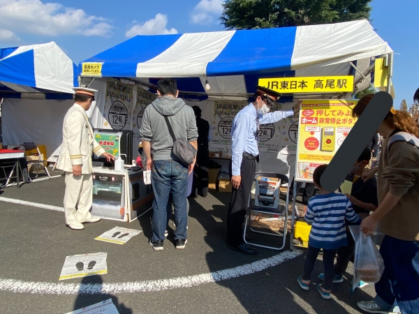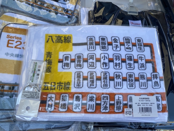 JR高尾駅開業120周年の記念グッズが目当てだったので、とりあえずJR高尾駅のブースで買い物。駅名標キーホルダーと中央線のマフラータオルを買った。