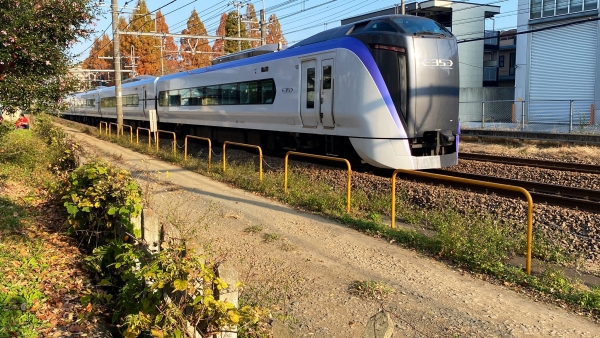 陵南会館(陵南いちょう会館)は一応日頃は立ち入り禁止エリアなので、柵がない場所から中央線を眺められる。
