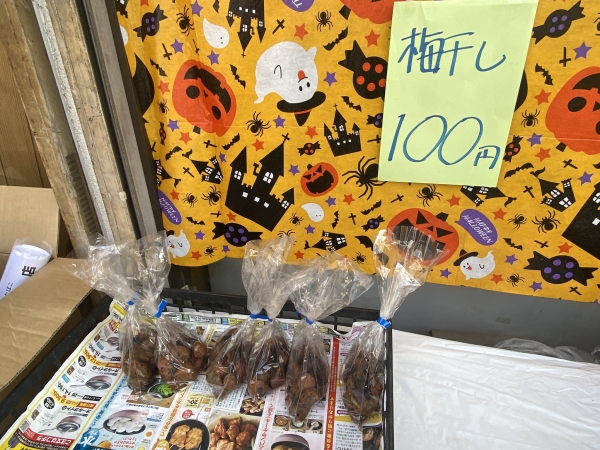 同じく甲州街道沿いの酒のせきぐちで梅干しを購入。1袋100円。