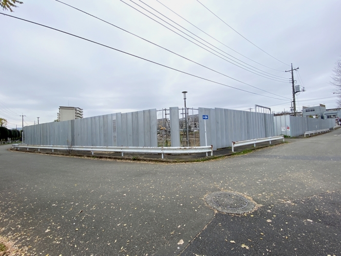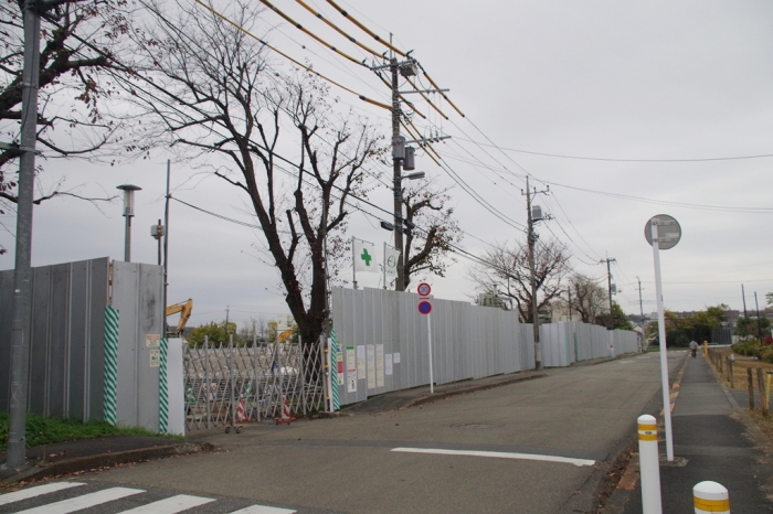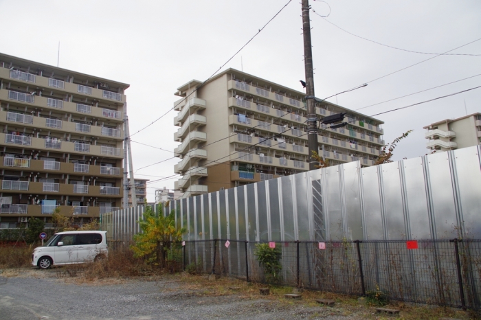 解体された都営長房南アパートの55、56、61、62、63、64号棟の一帯は仮囲いで覆われ侵入できないようになっている。