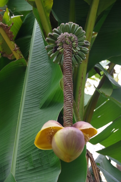 なんとバナナの実が成っていた。バナナってこういう風に実るのか。