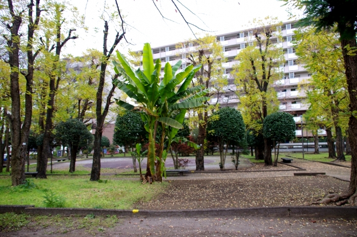 団地建て替え前からそのまま残してあるバナナの木だろうな~と思って見ていたら…