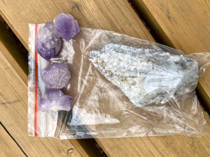 砂の中から宝石の粒を探すグッズなどもあったので、子供も楽しめると思う。ゴッシュナイト(緑柱石単結晶)を買ったらおまけでアメジストを付けて頂いた。