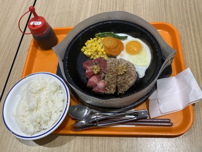 昨日はいちょう祭りの屋台店舗で細々と買って食べたが、今日はイーアス高尾店のペッパーランチを利用してみた。以前から気になっていたのを初めて食べてみた。自分で鉄くステーキは少し焼きすぎてしまったか、硬かった。ハンバーグは美味しい。あと甘口のソースが美味しかった。