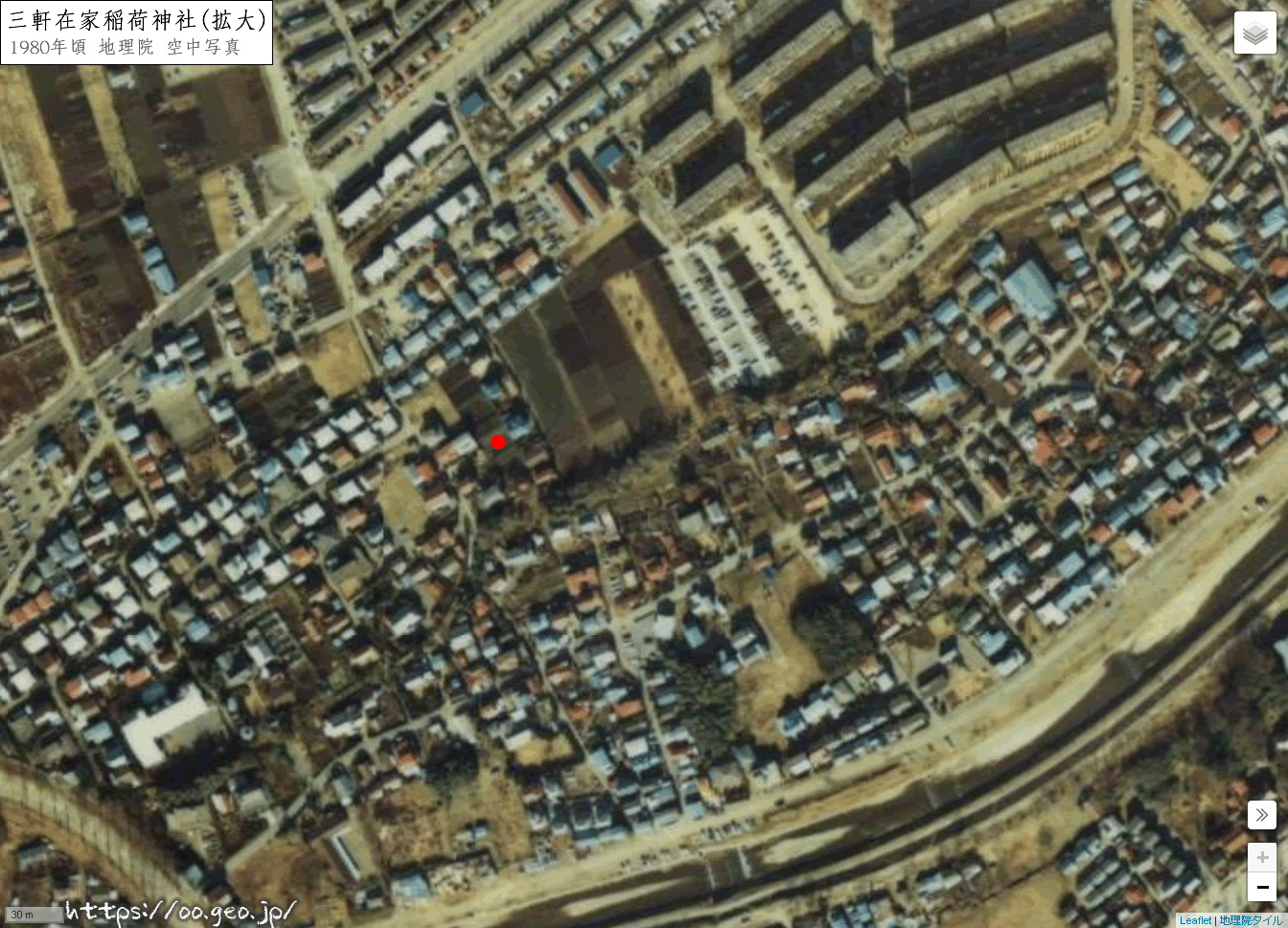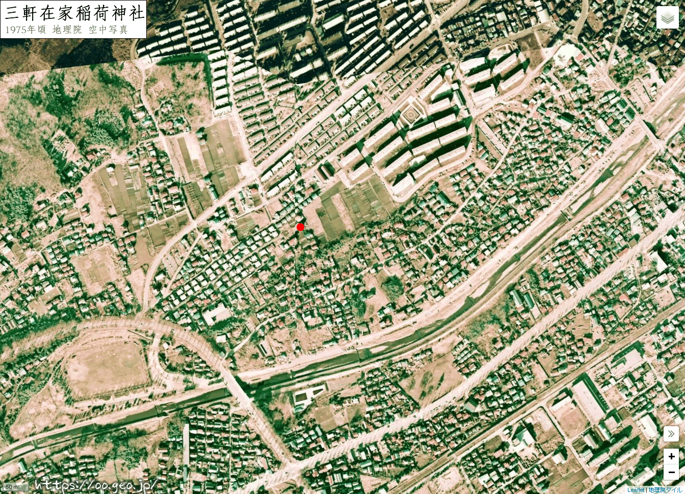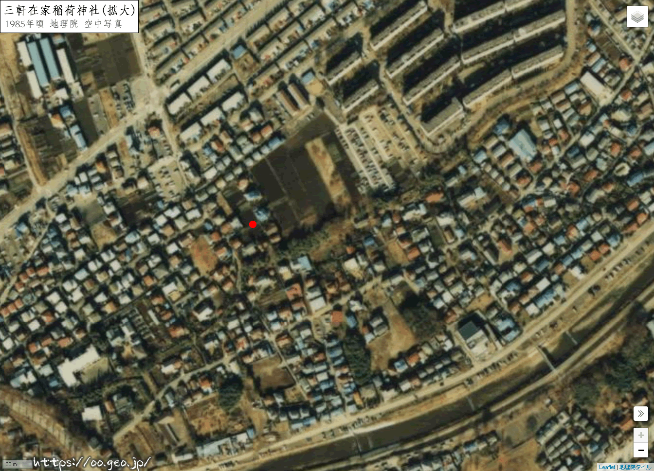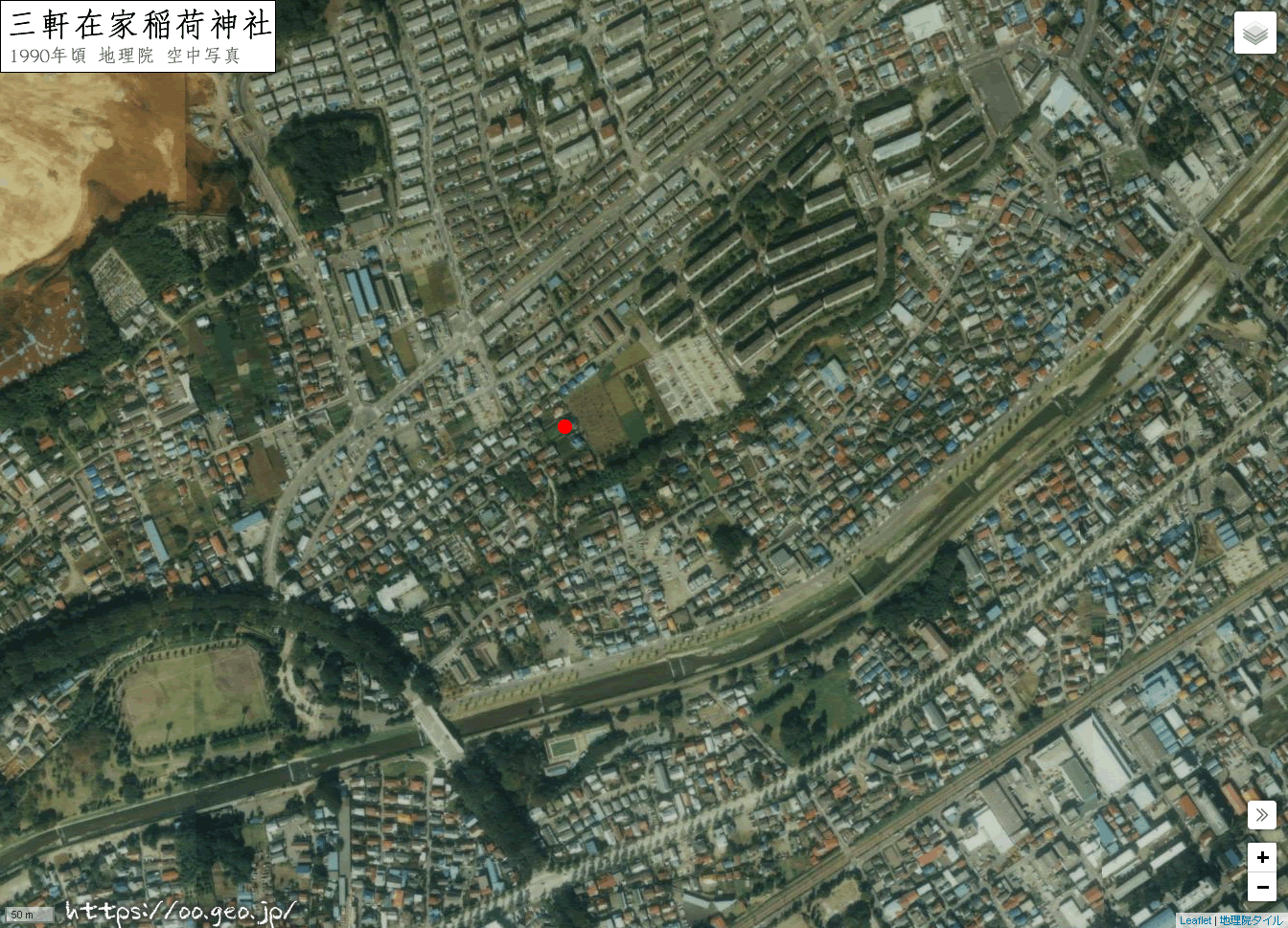 | 三軒在家 拡大地図 1963年頃の空中写真|1975年頃の空中写真|1980年頃の空中写真|1985年頃の空中写真|1990年頃の空中写真|地理院標準地図|地理院空中写真|OpenStreetMap| 別ウィンドウ表示 ※画像の読み込みに時間がかかります。 |