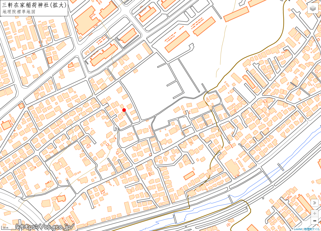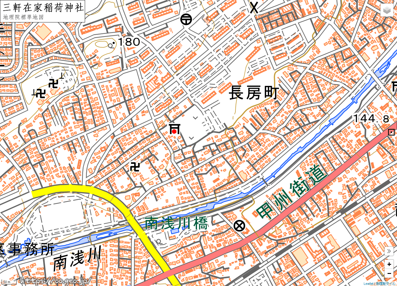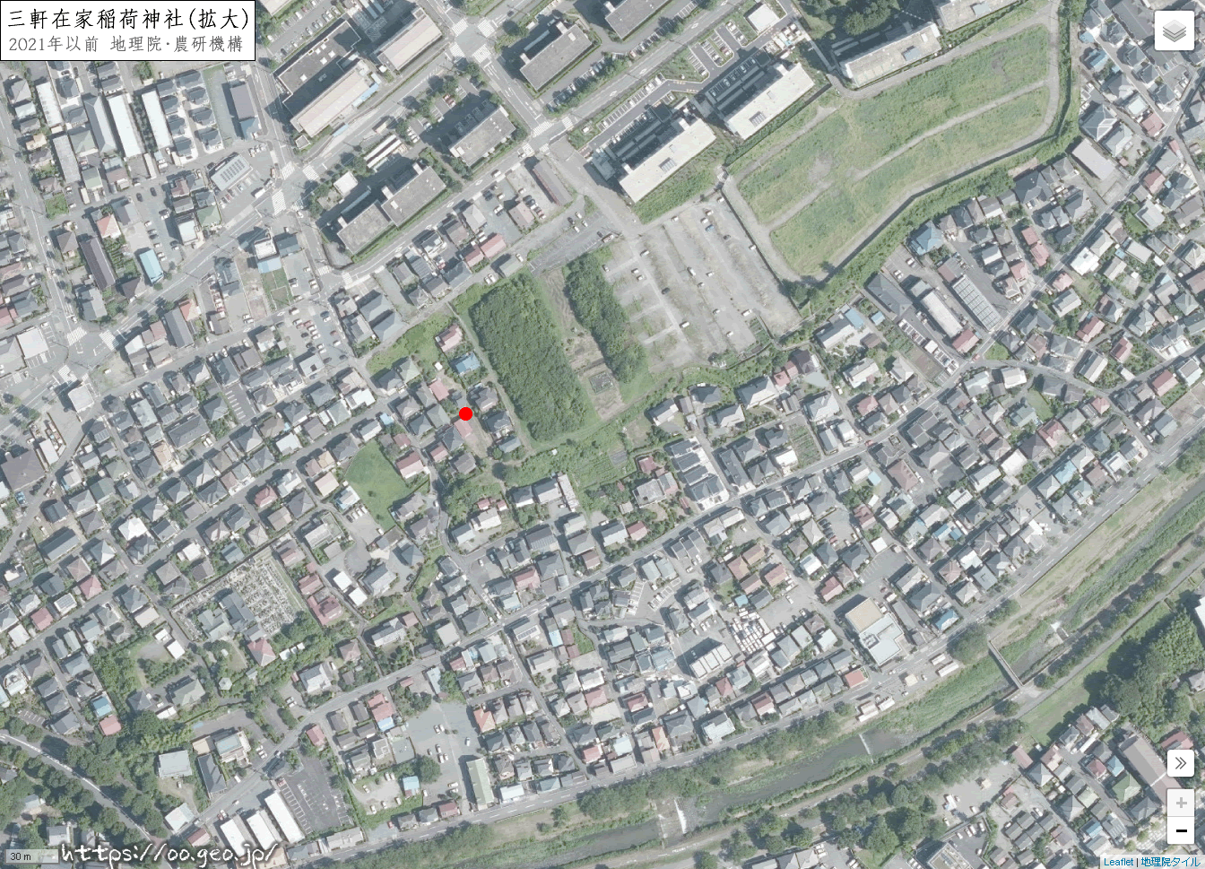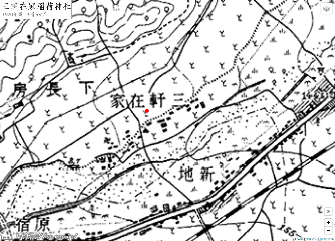 | 三軒在家 拡大地図 1963年頃の空中写真|1975年頃の空中写真|1980年頃の空中写真|1985年頃の空中写真|1990年頃の空中写真|地理院標準地図|地理院空中写真|OpenStreetMap| 別ウィンドウ表示 ※画像の読み込みに時間がかかります。 |