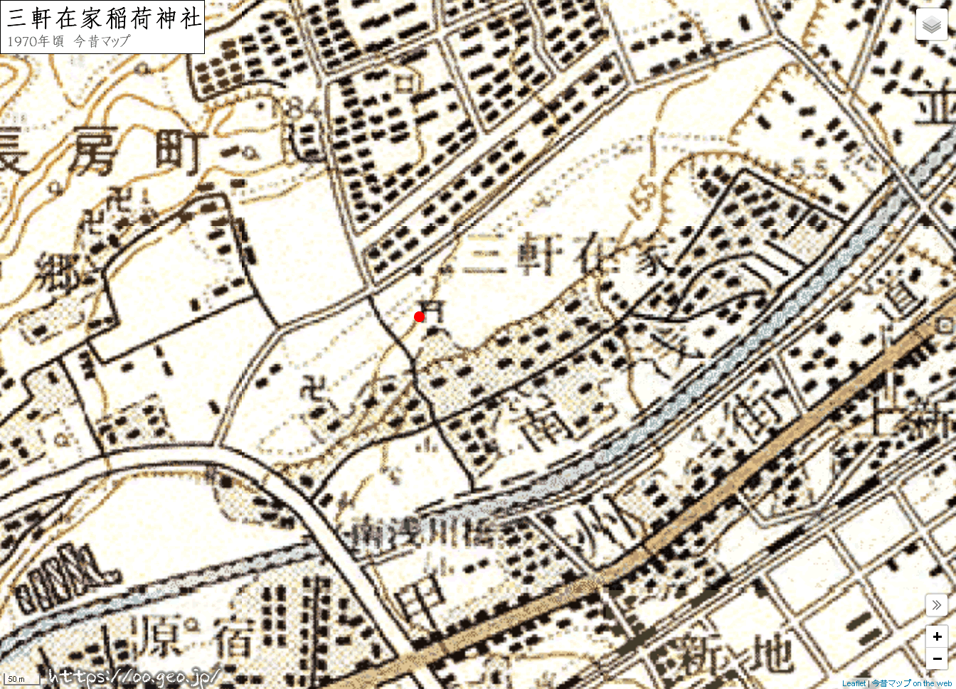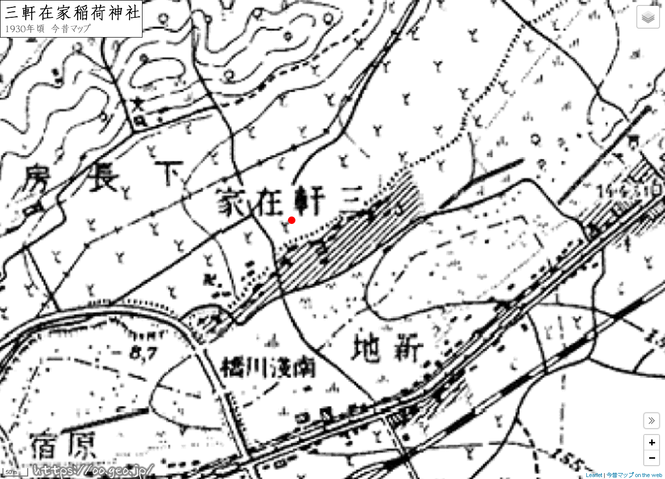 昔、三軒在家稲荷神社のまわりはこのような通じていた。