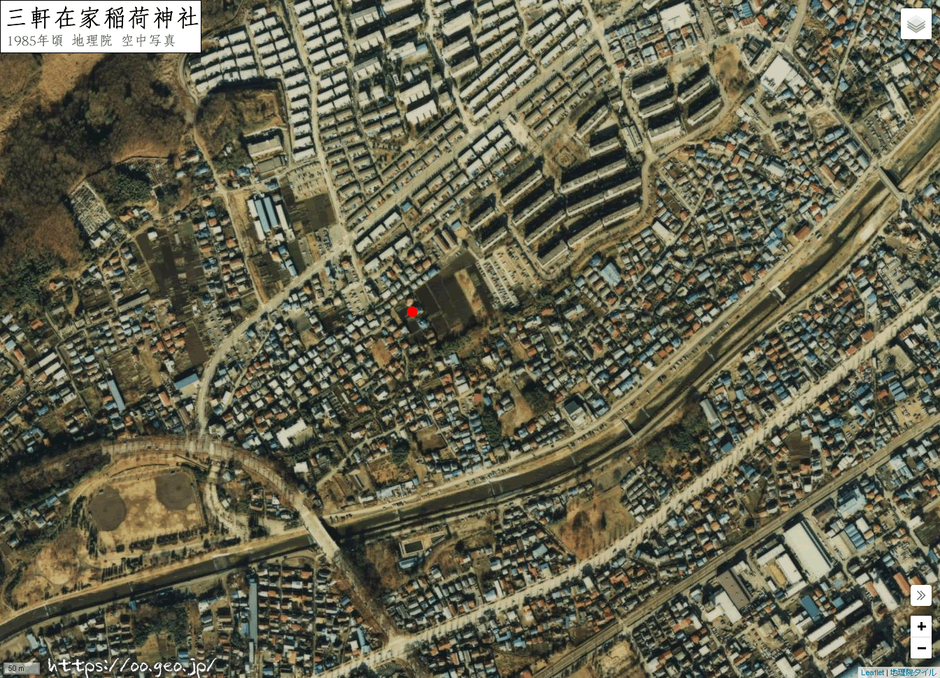 | 三軒在家 広域地図 1920年頃の地図|1930年頃の地図|1950年頃の地図|1963年頃の空中写真|1970年頃の地図|1975年頃の空中写真|1980年頃の空中写真|1985年頃の空中写真|1990年頃の空中写真|現在の地理院標準地図|現在の空中写真|OpenStreetMap| 別ウィンドウ表示 ※画像の読み込みに時間がかかります。 |