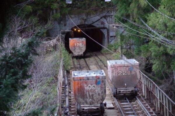 午前9時頃の奥多摩工業 氷川工場。本格的に稼働していないのか、かなり静か。先週の午前中は騒々しい大音響で稼働していたが。でも人の姿は見える。この調子だとトロッコの運行も期待できないかもしれない、でもまだ本格的な操業時間に達していないだけかもしれない、そんなことを考えながらトロッコの様子を見に行ってみる。