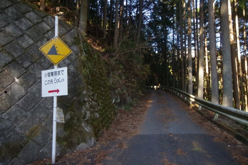 白妙橋から道なりに進んで出る集落。地理院地図で見ると「小菅」と書いてある辺りだが、厳密には小菅ではない模様。なぜかというと、この先に「小菅集落までこの先500m」という道標が出てくるので。というか、現在の住所表記では「日原」に当たる地域だが、「大澤」という地に当たるらしい。