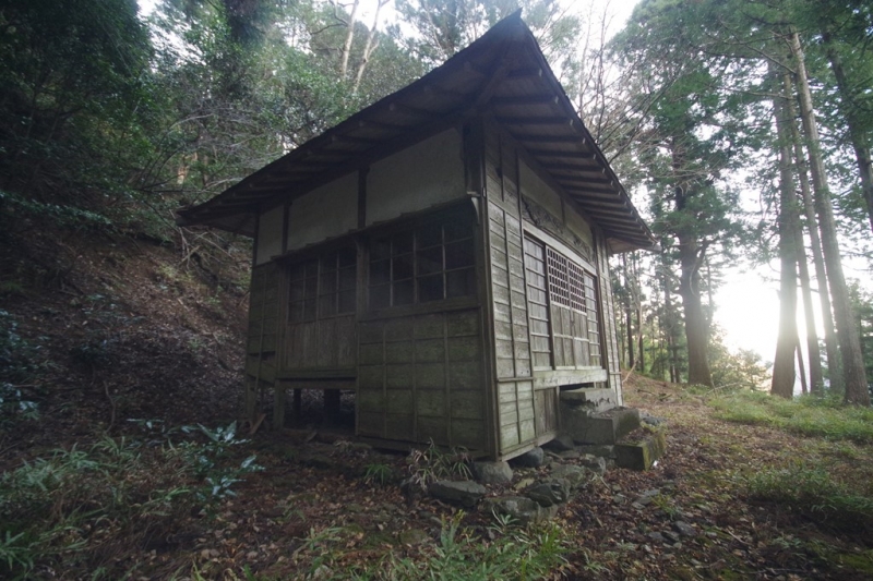 人の踏み跡もまばらな小菅集落の山の斜面を歩いてみると、山間の中にぽつんと荒れ果てた家屋がある。どうやら寺のようだ。