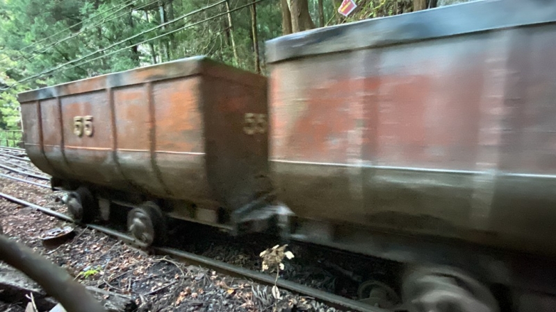 9時過ぎに到着した時点では運行していなかった。でもトンネルの電気はついているので、これから工場の稼働にあわせて運行するかもと思い、待機。