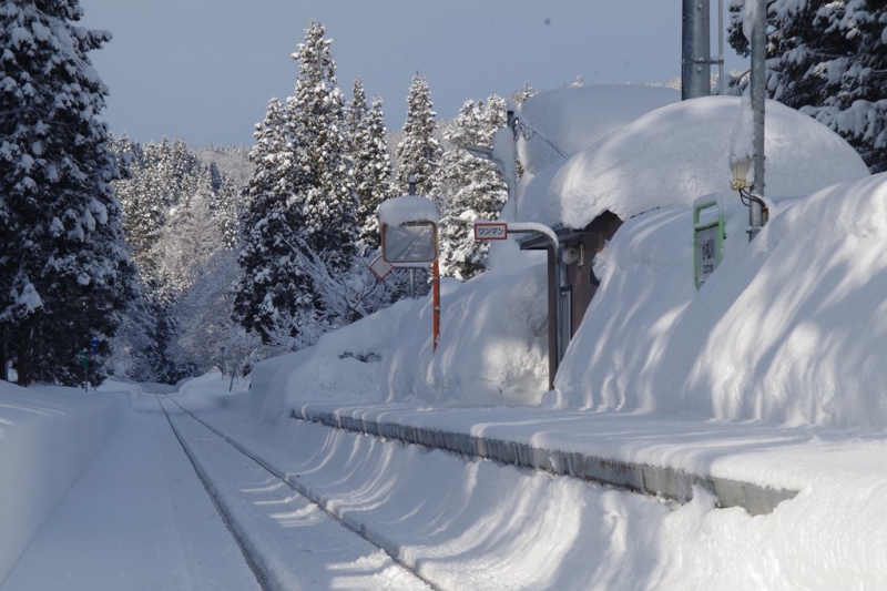 保線作業員さん達が踏切まわりの雪かきをしていた。
