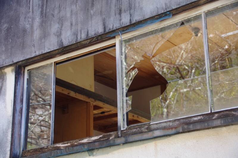 床も天井も剥がれ、相当に老朽化している。