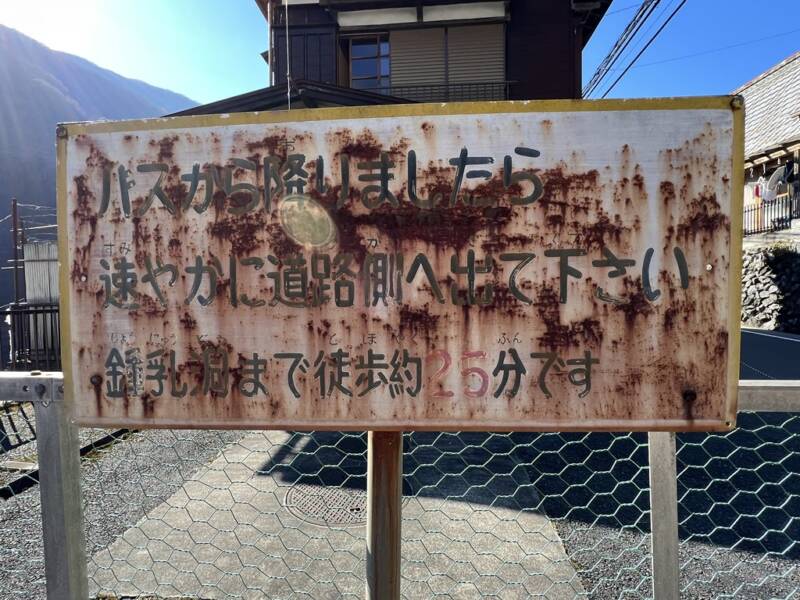 日原鍾乳洞へは東日原バス停から徒歩約25分