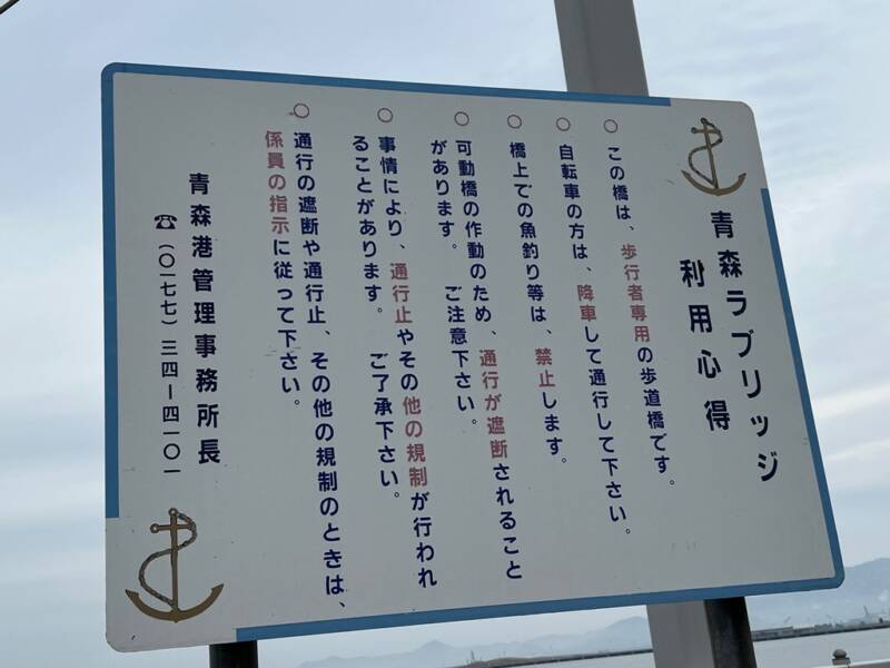 現地を歩いている時にレールを見て可動橋と気づいた。どんな風に動くのか想像もつかない。見てみたい。一応可動橋である旨の説明はあるが、動くことはあるのだろうか。昔冬に来たら雪が積もっていて通行禁止になっていた気がする。1993(平成5)年完成、平成5年7月供用開始。