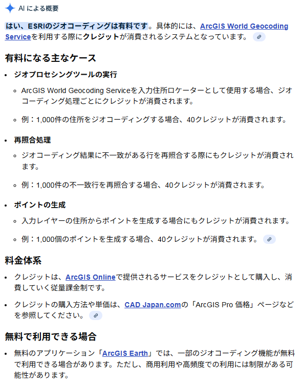 Esriのジオコーダー開発者コミュニティ-documents/leaflet-js-に住所検索機能を追加する-esri-leaflet-tips/ta-p/916523、無料のつもりでセットして使っていたんだけど、しばらく放置していたら使えなくなっていたのでAPIキーを再取得して使えるようにしたのだが、有料と表示されたのに驚いた。以前そんな表示なかったと思うのだが?(だから使ってた)。でもクレカ登録画面でてこなかったし、ライトユーザーなら費用請求されないとかある??